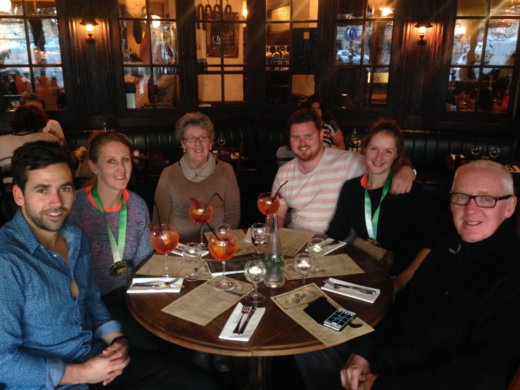 The champagne was chilling, and the pastries that were off limits pre-race were calling out to us. I think we broke some world records for bread and cheese consumption that afternoon, and dinner was a lot of fun – we certainly weren’t the only ones in orange tshirts and medals in the restaurant.